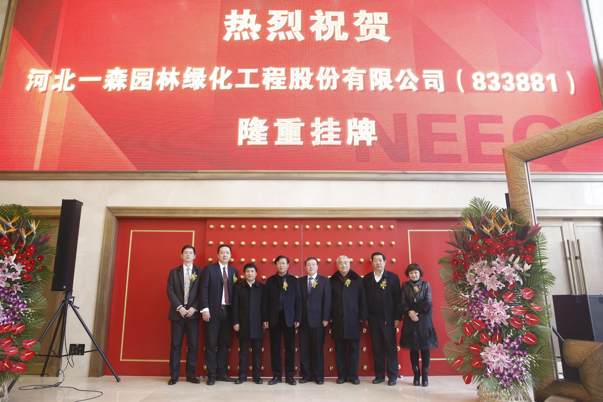 2015年12月21日 河北一森園林綠化工程股份有限公司在全國中小企業股份轉讓系統舉行隆重掛牌上市儀式,證券簡稱:一森園林,證券代碼:833881.一森園林正式登陸新三板,地方政府領導、各大企業、投資機構以及國內各大新聞媒體齊聚一堂,參與了此次隆重的掛牌儀式。