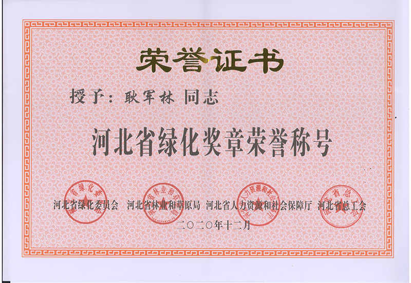河北省綠化獎(jiǎng)?wù)聵s譽(yù)稱號(hào)