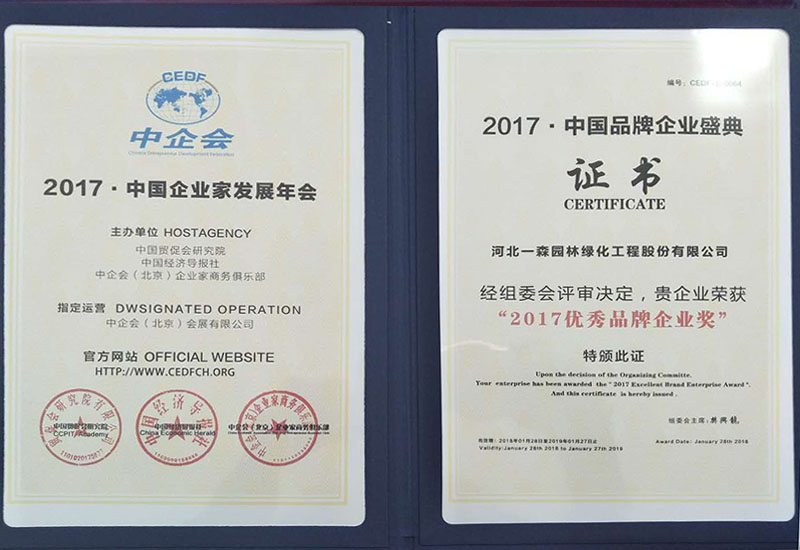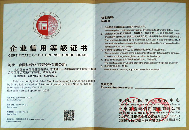 河北省城市園林綠化行業(yè)4A級(jí)誠(chéng)信企業(yè)